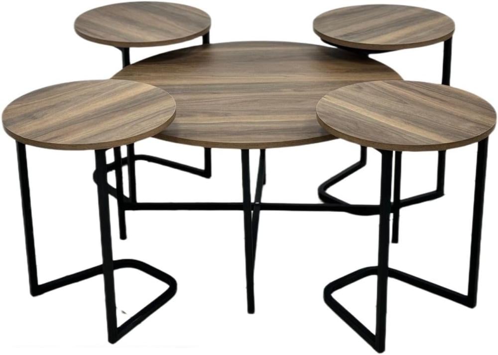 طقم طاولات خدمة 5 قطع بتصميم عصري وأنيق لون بني مقدم لكم من كاما، خشب