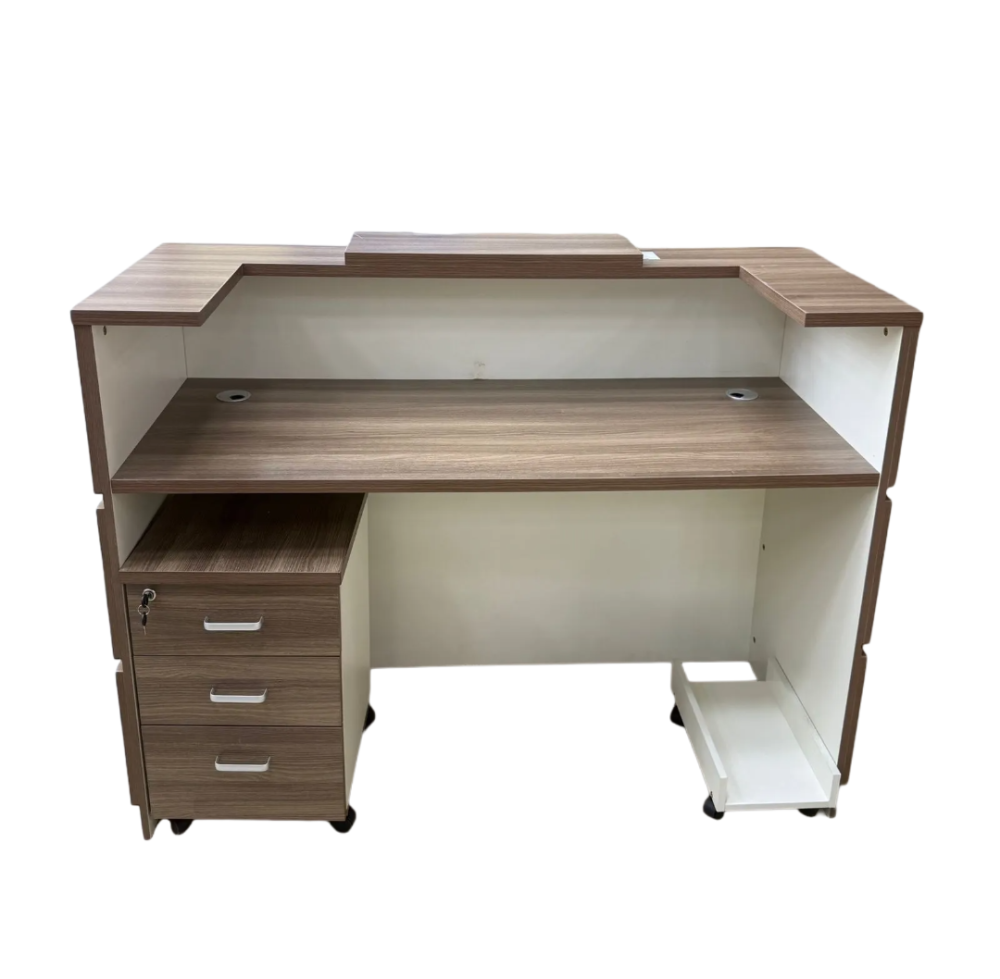 هذا المكتب الاستقبال هو قطعة أثاث أنيقة وعملية مصممة لتلبية احتياجات أي مكتب أو استقبال. يتميز بتصميمه العصري والوظيفي، مما يجعله إضافة مثالية لأي مساحة عمل.