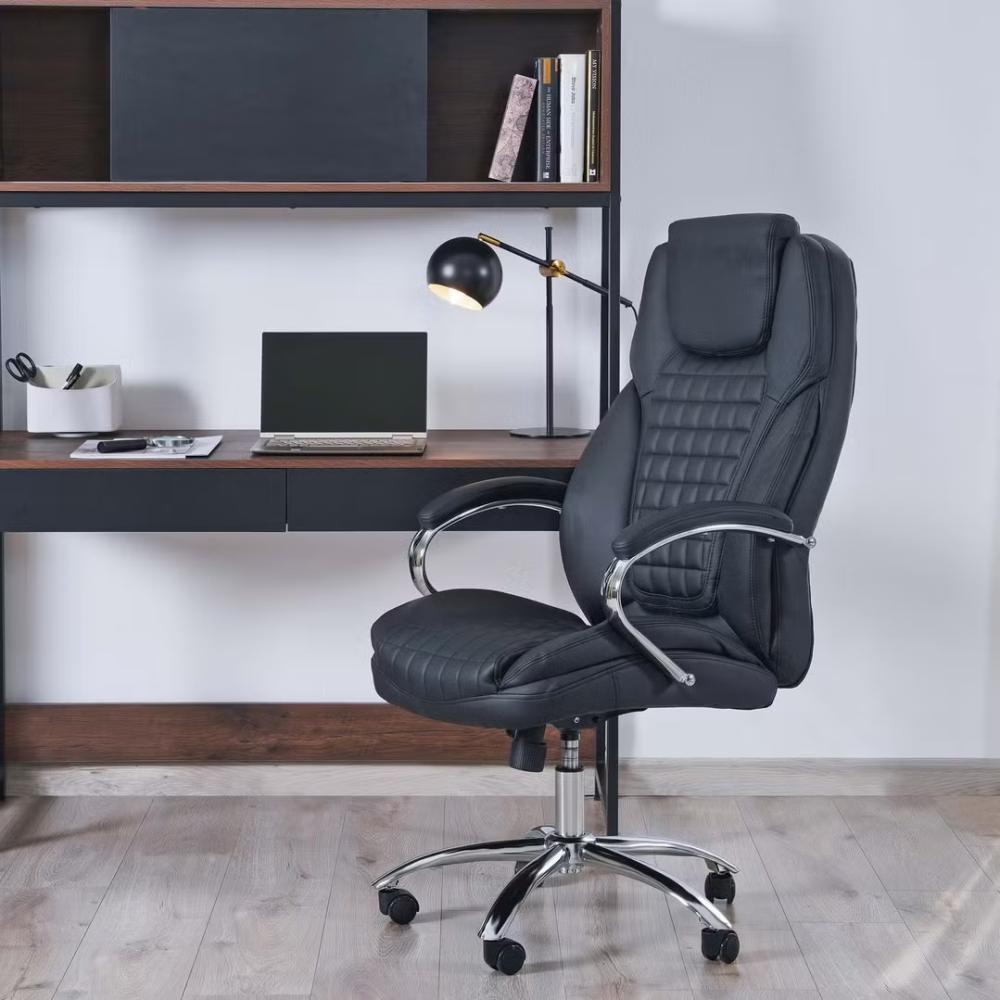 كرسي مكتبي جلد لون أسود فخم مقدم من كاما