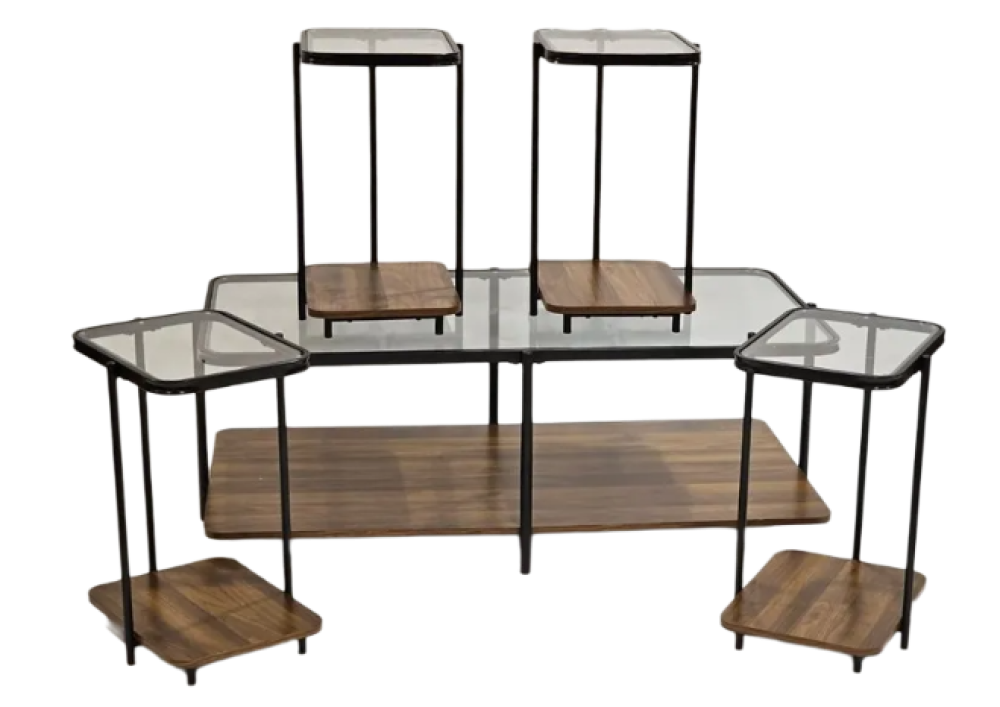 استعد لتحويل مساحة استقبال منزلك بأناقة فائقة مع طاولات الخدمة هذه المميزة بتصميم عصري وراقي يضفي لمسة من الفخامة على أي مكان، تتألف المجموعة من اربعة طاولات جانبية وطاولة رئيسية، تتميز بسطح زجاجي رائع ومتين، بالإضافة لحامل مصنوع من مواد عالية الجودة مما يمنحها استقرارًا وصلابة.