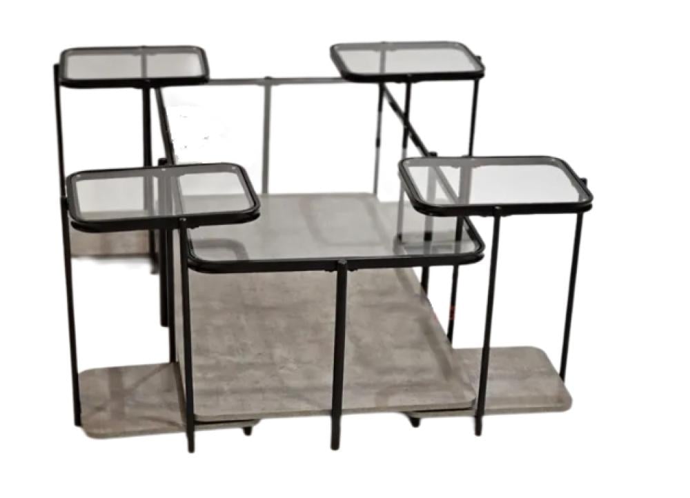 استعد لتحويل مساحة استقبال منزلك بأناقة فائقة مع طاولات الخدمة هذه المميزة بتصميم عصري وراقي يضفي لمسة من الفخامة على أي مكان، تتألف المجموعة من اربعة طاولات جانبية وطاولة رئيسية، تتميز بسطح زجاجي رائع ومتين، بالإضافة لحامل مصنوع من مواد عالية الجودة مما يمنحها استقرارًا وصلابة.