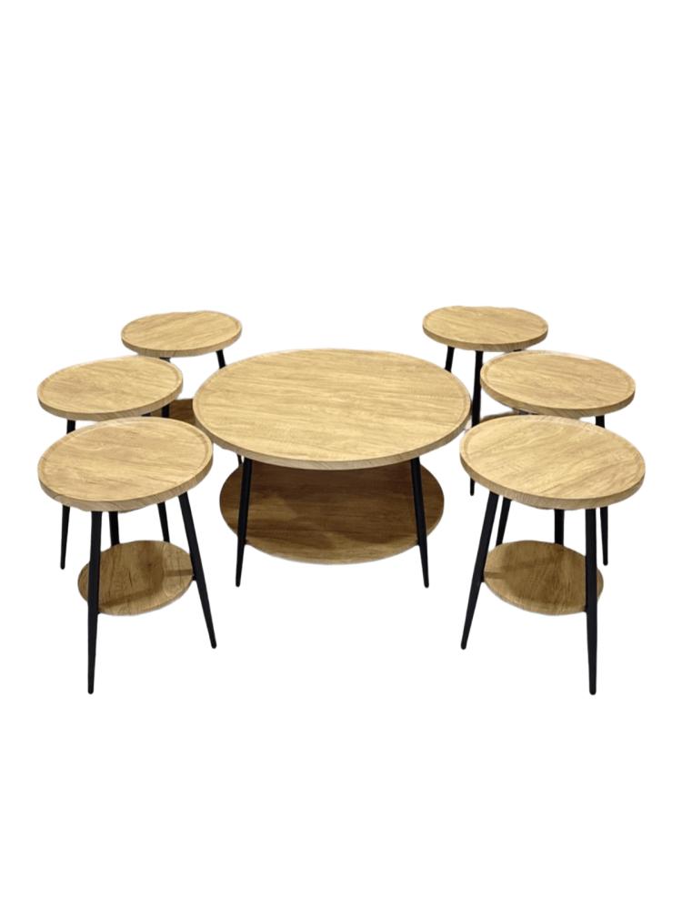 مجموعة طاولات خدمة خشب 6+1 – لون خشبي فاخر – طاولة كبيرة مع 6 طاولات تقديم صغيرة – مثالي للمنزل والضيافة – من كاما