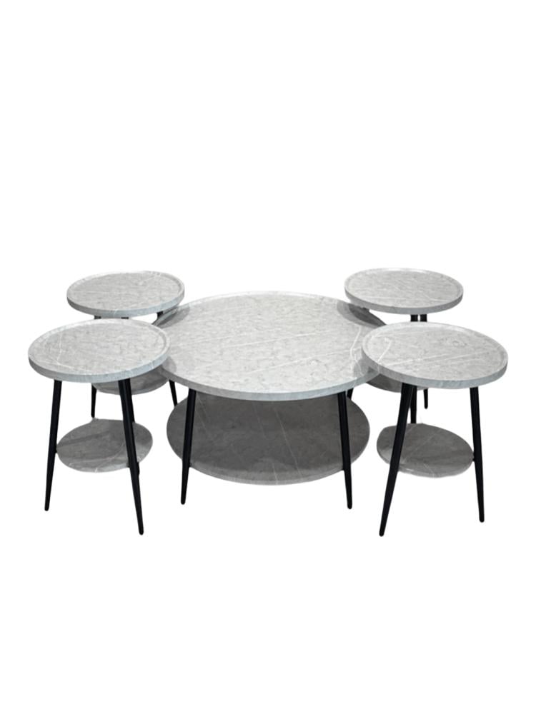 مجموعة طاولات خدمة خشب 4+1 – لون رمادي فاتح – طاولة كبيرة مع 4 طاولات تقديم صغيرة – مثالي للمنزل والضيافة – من كاما
