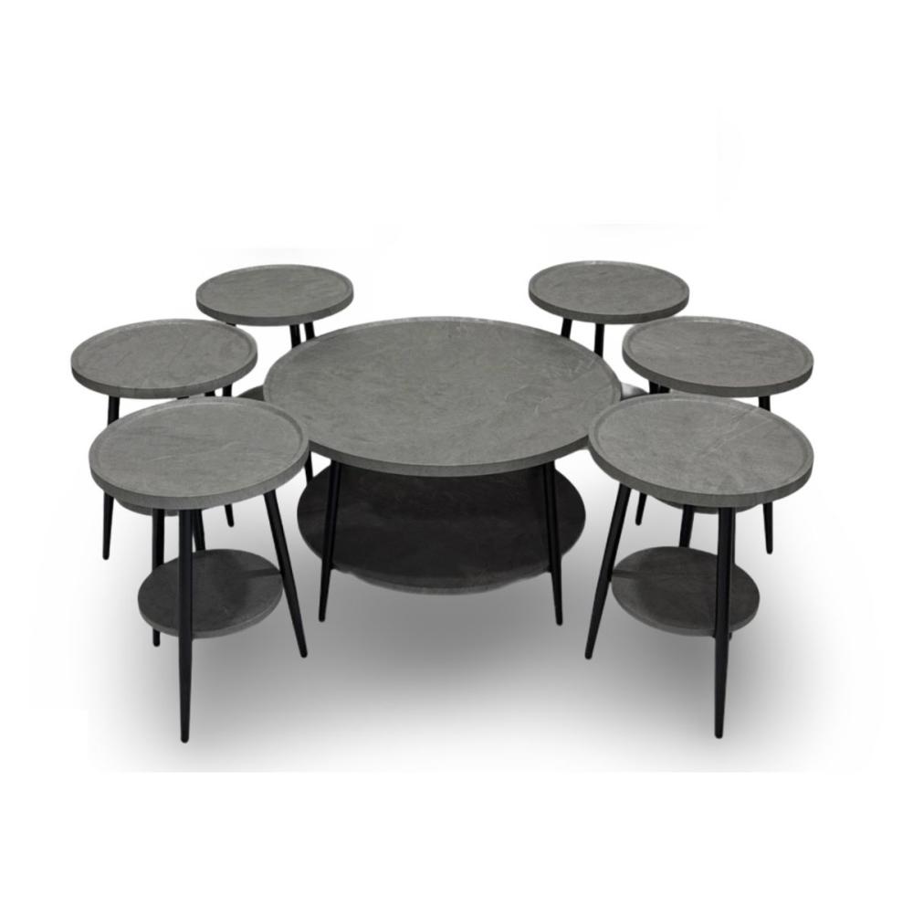 مجموعة طاولات خدمة خشب 6+1 – لون رمادي غامق – طاولة كبيرة مع 6 طاولات تقديم صغيرة – مثالي للمنزل والضيافة – من كاما