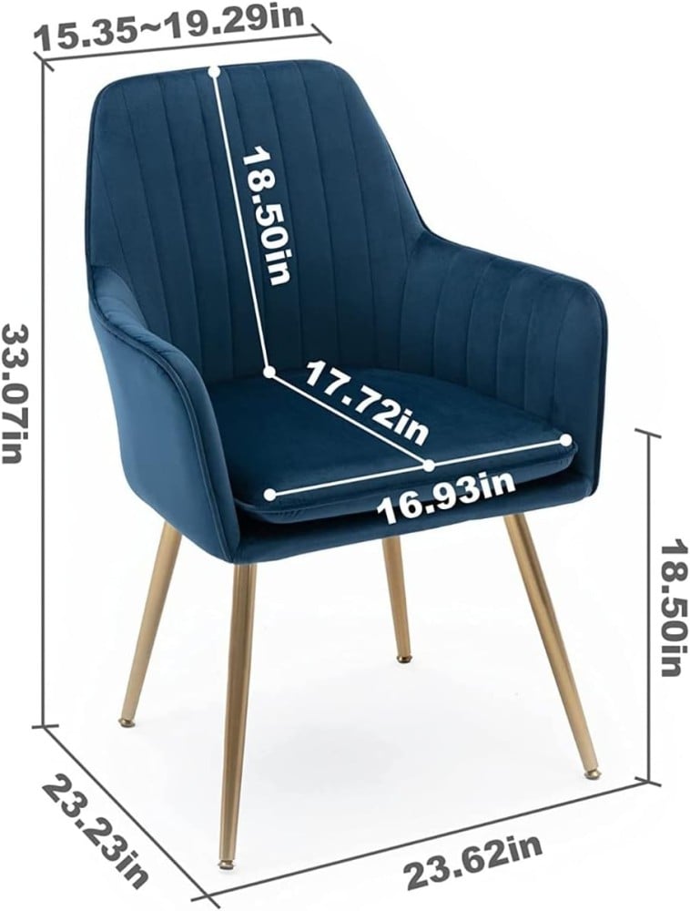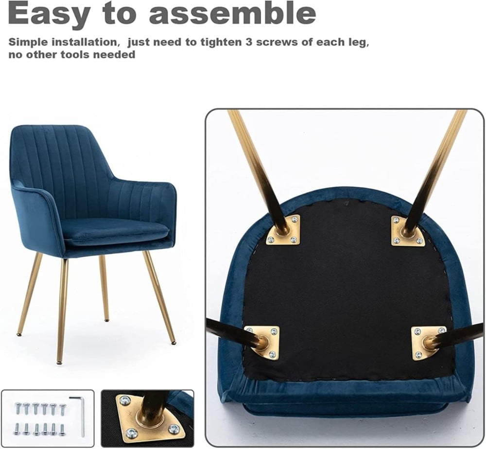 • أرجل مطلية بالذهب: الأرجل الأنبوبية المعدنية مع طلاء ذهبي تجعل الكرسي بأكمله أكثر فخامة والجزء السفلي من أرجل الكرسي يحتوي على واقيات أرضية مطاطية بلاستيكية للأرضيات الحساسة