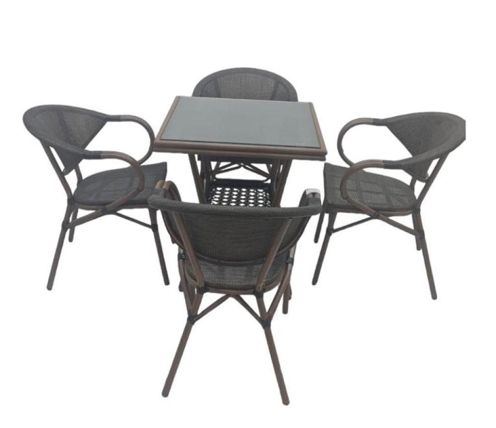 جلسة خارجية طاولة مربعة مع ٤ كراسي لون بني مقدمة لكم من كاما