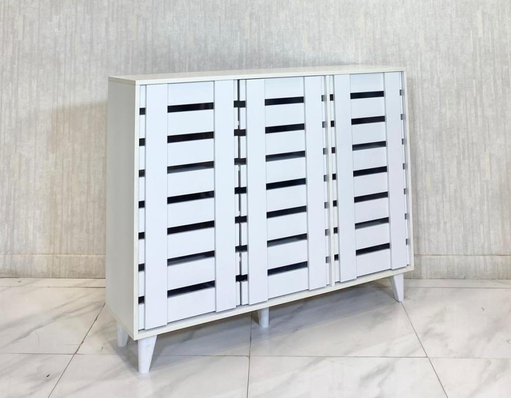 دولاب احذية3باب شكل عصري لون أبيض مقدم لكم من كاما، خشب