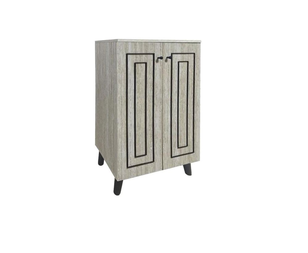 تصميم خشبي يوفر مساحة تخزين واسعة للأحذية أو الإكسسوارات.
