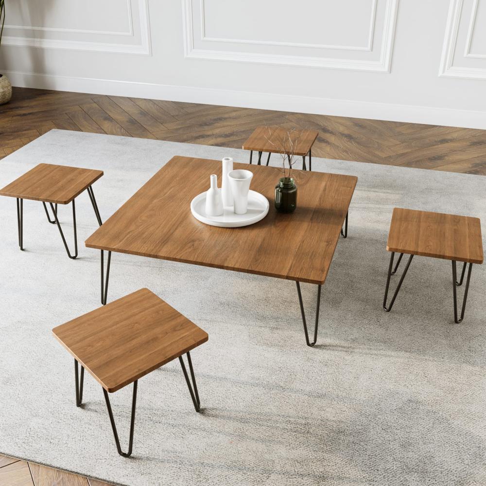 طقم طاولات ارضية بشكل مربع -بني فاتح ــ 5 قطع من كاما