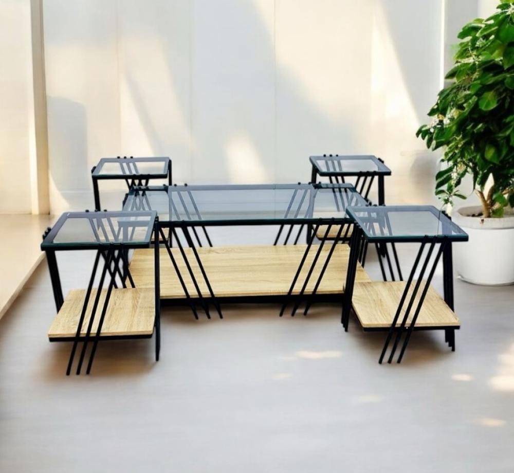 طقم طاولات شاي مودرن خشب سطح زجاج 5 قطع لون بيج فاتح من كاما