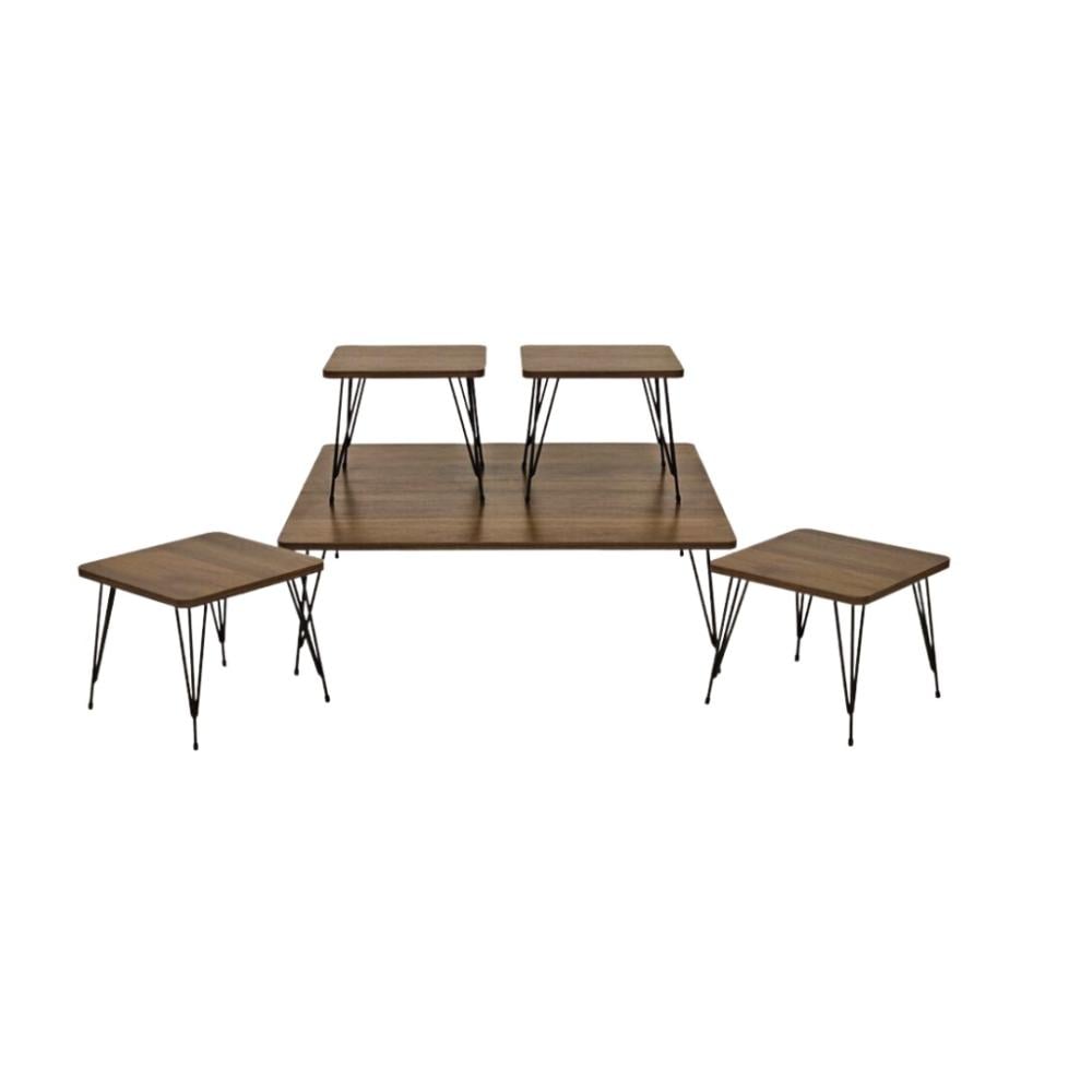استمتعي باقتناء هذا الطقم الفاخر من طاولات الخدمة الارضي المكون من اربعة طاولات خدمة مع طاولة وسط علي شكل مربع تتميز بوجود ارجل معدنية لتزيد من متانتها وقوة تحملها