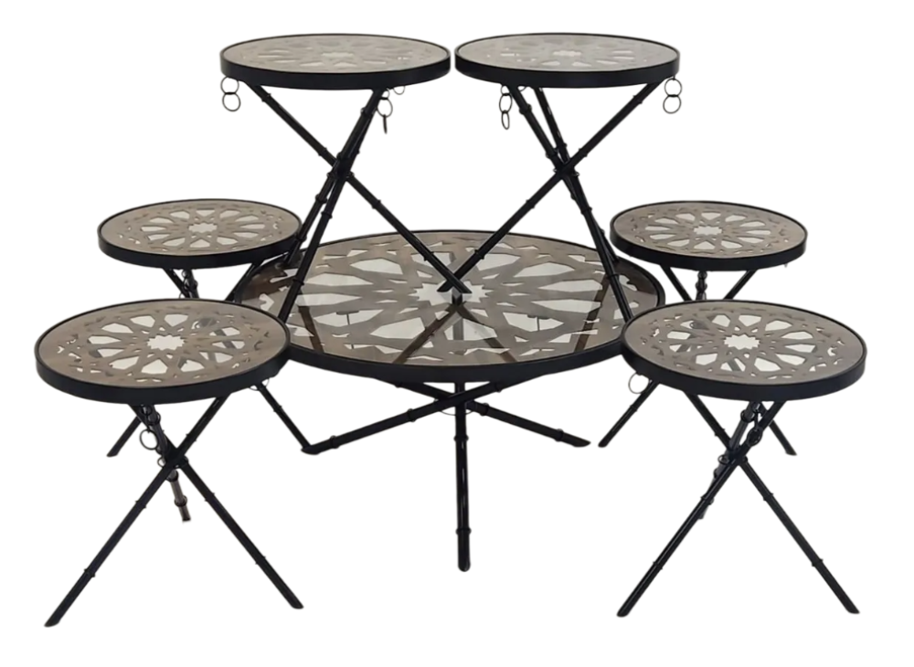 طقم طاولات معدن اسود زجاج 7 قطع من كاما