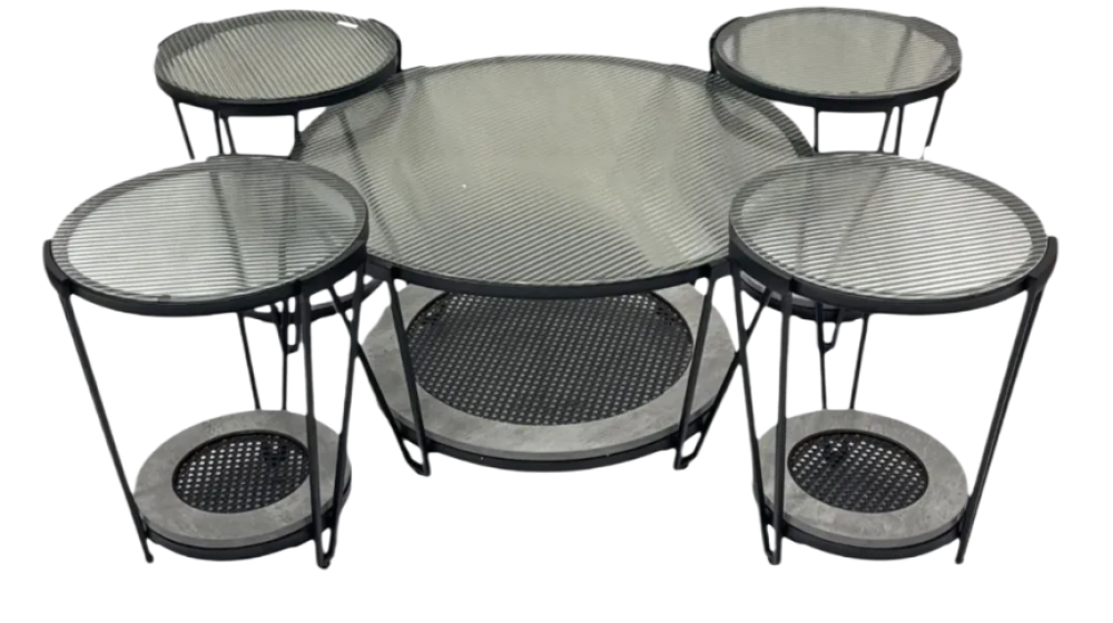 طقم طاولات خدمة6+1 زجاج وخشب لون رمادي من كاما