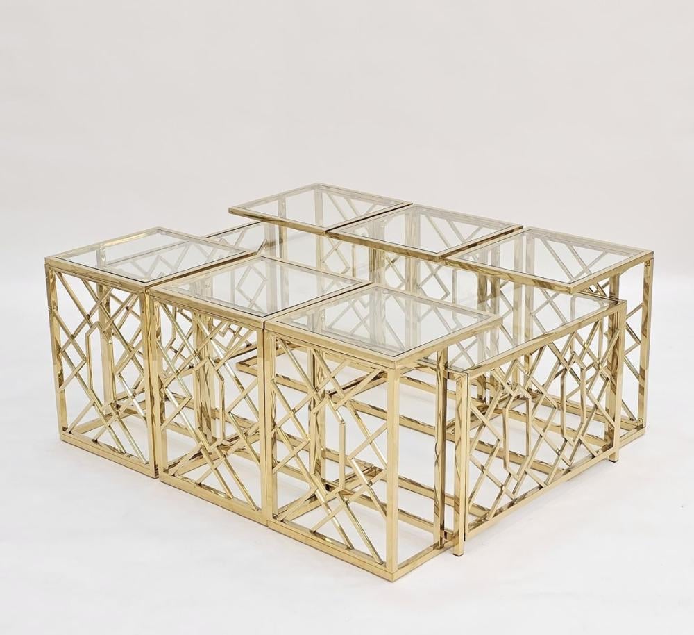 استمتع بتجربة قهوة استثنائية مع هذا الطقم بتصميم فاخر وجذاب. يتميز الطقم بسطح زجاج فاخر وقاعدة استيل ذهبي تضفي الثبات والأناقة الفريدة و بمقاسات مثالية