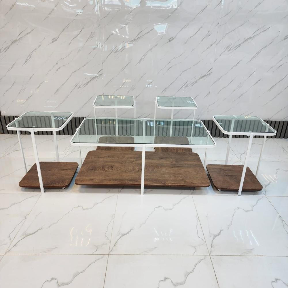 طقم طاولات مربع بسطح زجاج لون أبيض*بني فاتح مقدم لكم من كاما