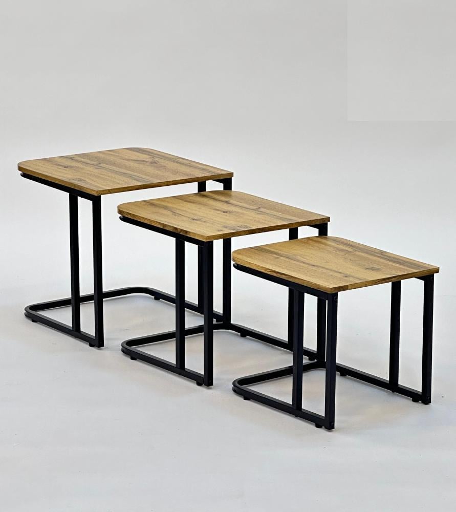 طقم طاولات مودرن خشب مكون من 3 قطع بأحجام مختلفة، يتميز بتصميمه العصري والبسيط الذي يناسب جميع أنماط الديكور. هذا الطقم يجمع بين الجمال العملي عالي الجودة ليضفي لمسة من الفخامة على منزلك.