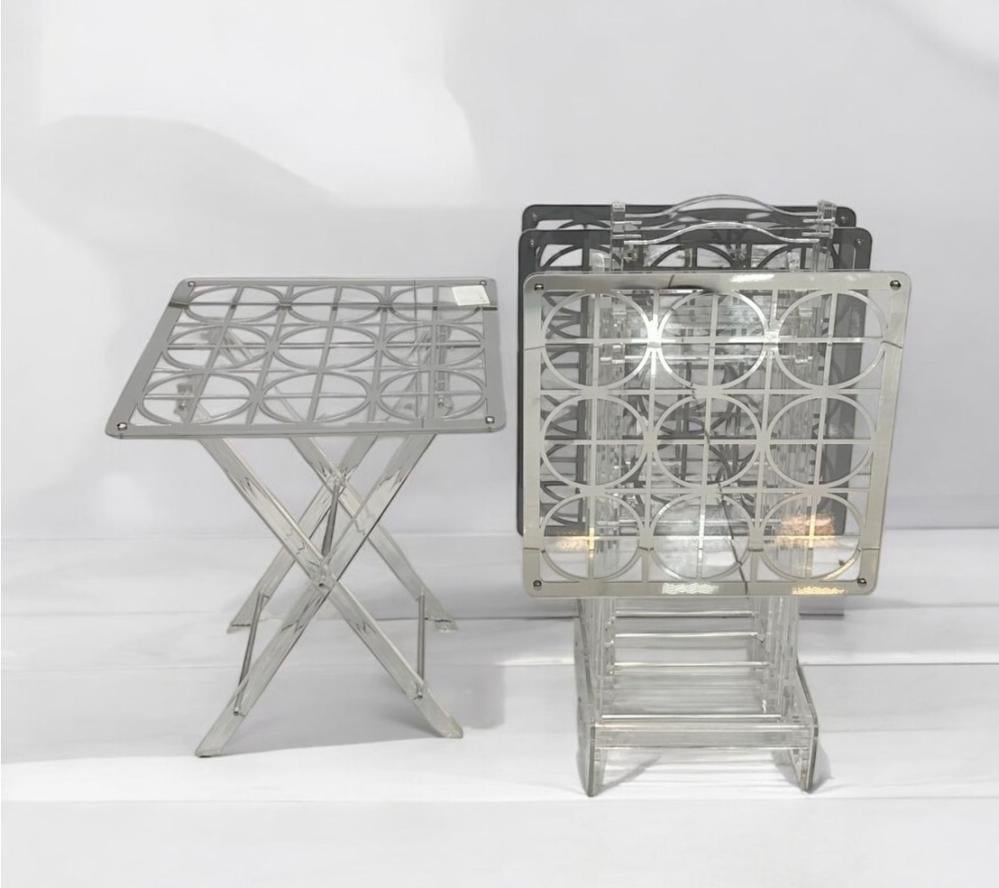 طقم طاولات مربع اكريليك لون فضي مع حامل موديل a9 من كاما