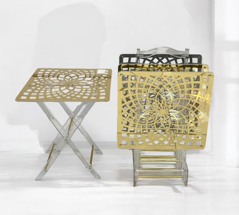 طقم طاولات مربع اكريليك لون ذهبي مع حامل موديل a7 من كاما