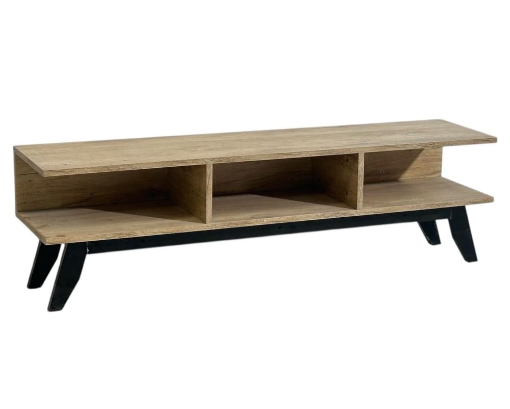 يمكن لهذه الوحدة المصنوعة من الخشب المصمم هندسيًا أن تستوعب شاشات تلفزيون صغيرة إلى كبيرة الحجم.