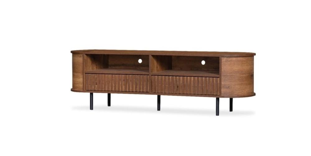 • طاولة بلازما مميزة بتصميم بسيط وانيق يضفي لمسة من الرقي للديكور المحيط، مصنوعة من أجود المواد بلون بني ومزودة بخزانتين جانبيتين ورفوف في المنتصف بالإضافة لفتحة دائرية تفيد في تمير الأسلاك بأسلوب مخفي وانيق، لتشكل إضافة مميزة لديكور غرفة المعيشة