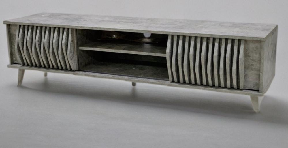 - طاولة بلازما مميزة بتصميم بسيط وانيق يضفي لمسة من الرقي للديكور المحيط، مصنوعة من أجود المواد بلون بني ومزودة بخزانتين جانبيتين ورفوف في المنتصف بالإضافة لفتحة دائرية تفيد في تمير الأسلاك بأسلوب مخفي وانيق، لتشكل إضافة مميزة لديكور غرفة المعيشة