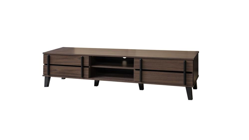 يمكن لهذه الوحدة المصنوعة من الخشب المصمم هندسيًا أن تستوعب شاشات تلفزيون صغيرة إلى كبيرة الحجم.