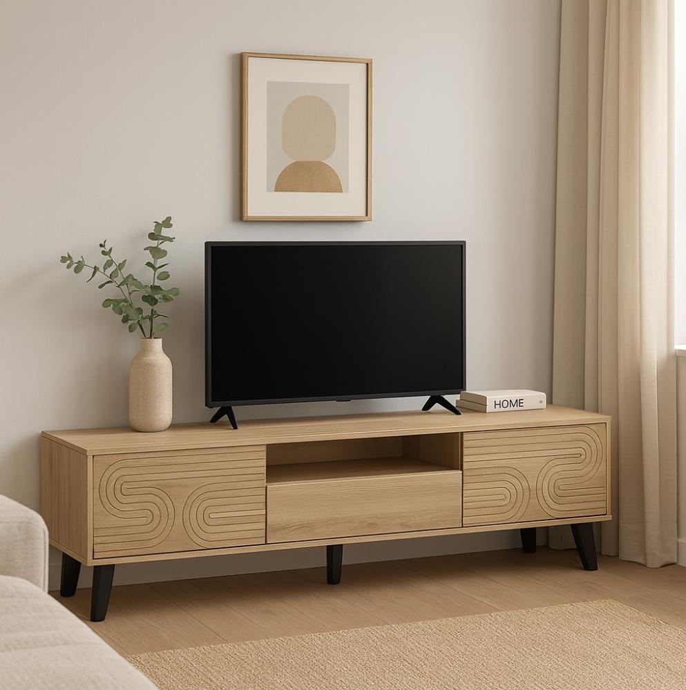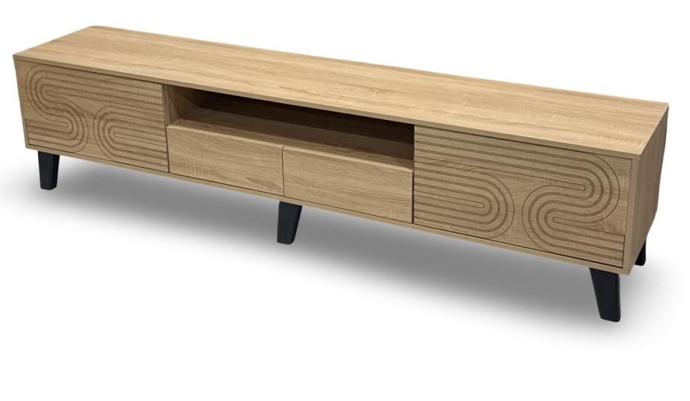 أضف لمسة أنيقة وعملية لمساحة المعيشة مع طاولة التلفزيون الخشبية ذات التصميم المودرن. تأتي بطول 200 سم، وتتميز بأدراج متعددة ومساحة مفتوحة لتخزين الأجهزة والملحقات. تصميمها البسيط بخطوط نظيفة وأرجل سفلية يرفعها عن الأرضية بلمسة فاخرة. مثالية لغرف المعيشة الحديثة وتجمع بين الوظيفة والجمال في قطعة واحدة.