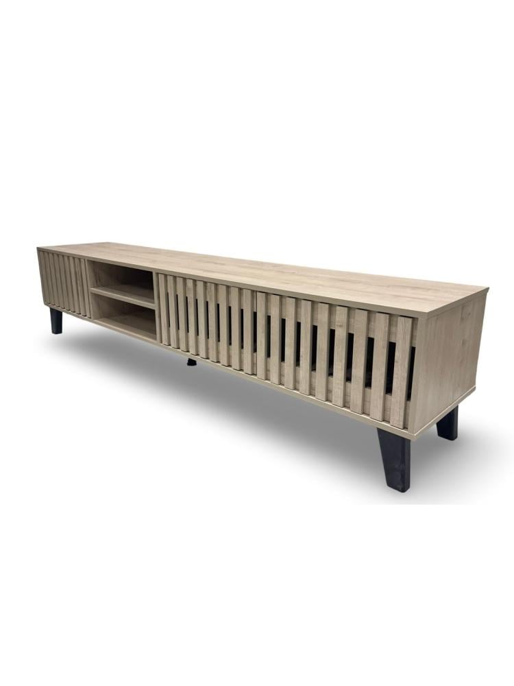 أضف لمسة من الفخامة والعصرية إلى غرفة معيشتك مع طاولة التلفزيون الخشبية بتصميمها العصري الأنيق.