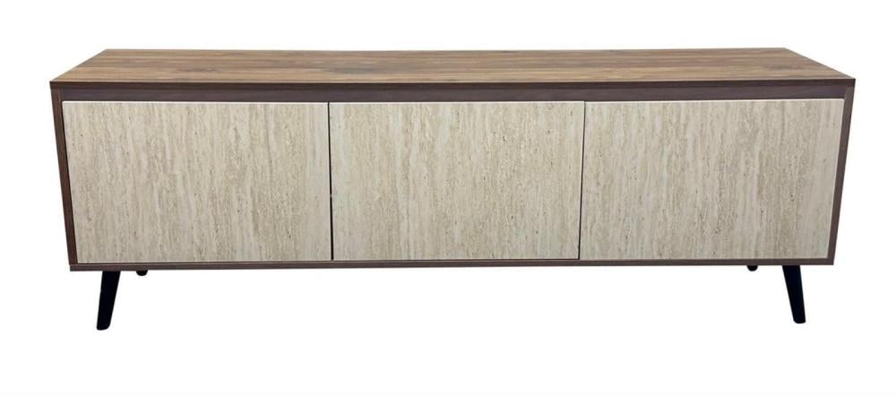 طاولة تلفزيون بتصميم عصري تجمع بين العملية والأناقة، مصنوعة من خامات خشبية متينة تمنح ثباتًا وقوة استخدام يومي. تتميز بثلاثة أبواب تخزين توفر مساحة واسعة لتنظيم الأجهزة والإكسسوارات بسهولة، مع سطح علوي مناسب لوضع التلفاز أو القطع الديكورية. أرجل معدنية مرتفعة تمنح الطاولة ثباتًا إضافيًا ولمسة مودرن تناسب معظم أنماط الديكور. تعتبر خيارًا مثاليًا لغرفة المعيشة بفضل مظهرها البسيط وقدرتها على إضفاء مظهر مرتب وأنيق للمساحة. تصميمها العملي يساعد على إخفاء الفوضى وتخزين كل ما تحتاجه في مكان واحد، مما يجعلها قطعة أساسية في أي منزل يبحث عن الأناقة والتنظيم.