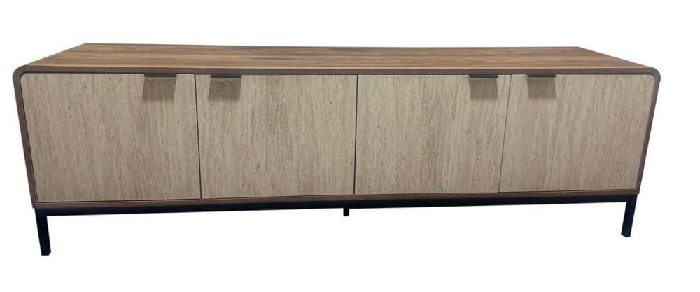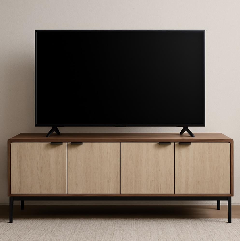 طاولة تلفزيون بتصميم عصري تجمع بين العملية والأناقة، مصنوعة من خامات خشبية متينة تمنح ثباتًا وقوة استخدام يومي. تتميز بأربعة أبواب تخزين توفر مساحة واسعة لتنظيم الأجهزة والإكسسوارات بسهولة، مع سطح علوي مناسب لوضع التلفاز أو القطع الديكورية. أرجل معدنية مرتفعة تمنح الطاولة ثباتًا إضافيًا ولمسة مودرن تناسب معظم أنماط الديكور. تعتبر خيارًا مثاليًا لغرفة المعيشة بفضل مظهرها البسيط وقدرتها على إضفاء مظهر مرتب وأنيق للمساحة. تصميمها العملي يساعد على إخفاء الفوضى وتخزين كل ما تحتاجه في مكان واحد، مما يجعلها قطعة أساسية في أي منزل يبحث عن الأناقة والتنظيم.