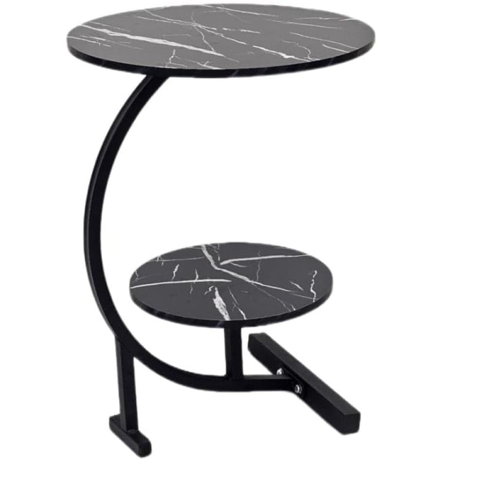 طاولة جانبية متعددة الاستخدام على شكل حرف C باطار معدني طاولة شاي صغيرة من طبقتين للمنزل والمكتب وغرفة النوم (المقاس: 45 × 45 × 60 سم مقدمة لكم من كاما، أسود