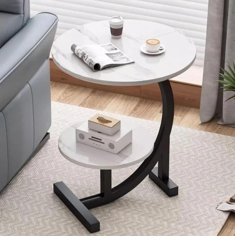 طاولة جانبية متعددة الاستخدام على شكل حرف C باطار معدني طاولة شاي صغيرة من طبقتين للمنزل والمكتب وغرفة النوم (المقاس: 45 × 45 × 60 سم لون أبيض مقدمة لكم من كاما