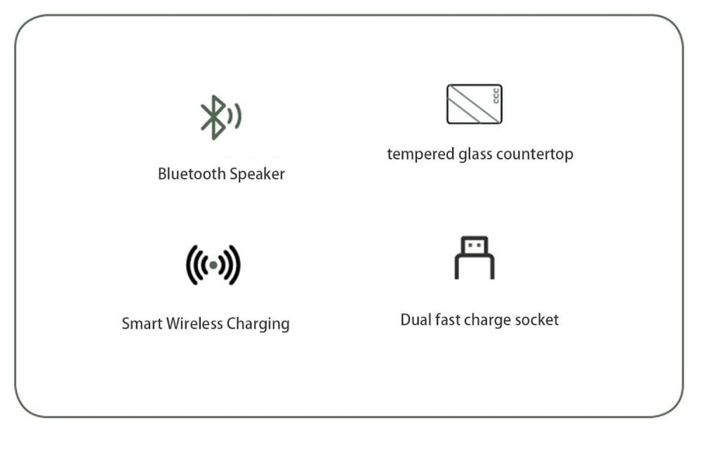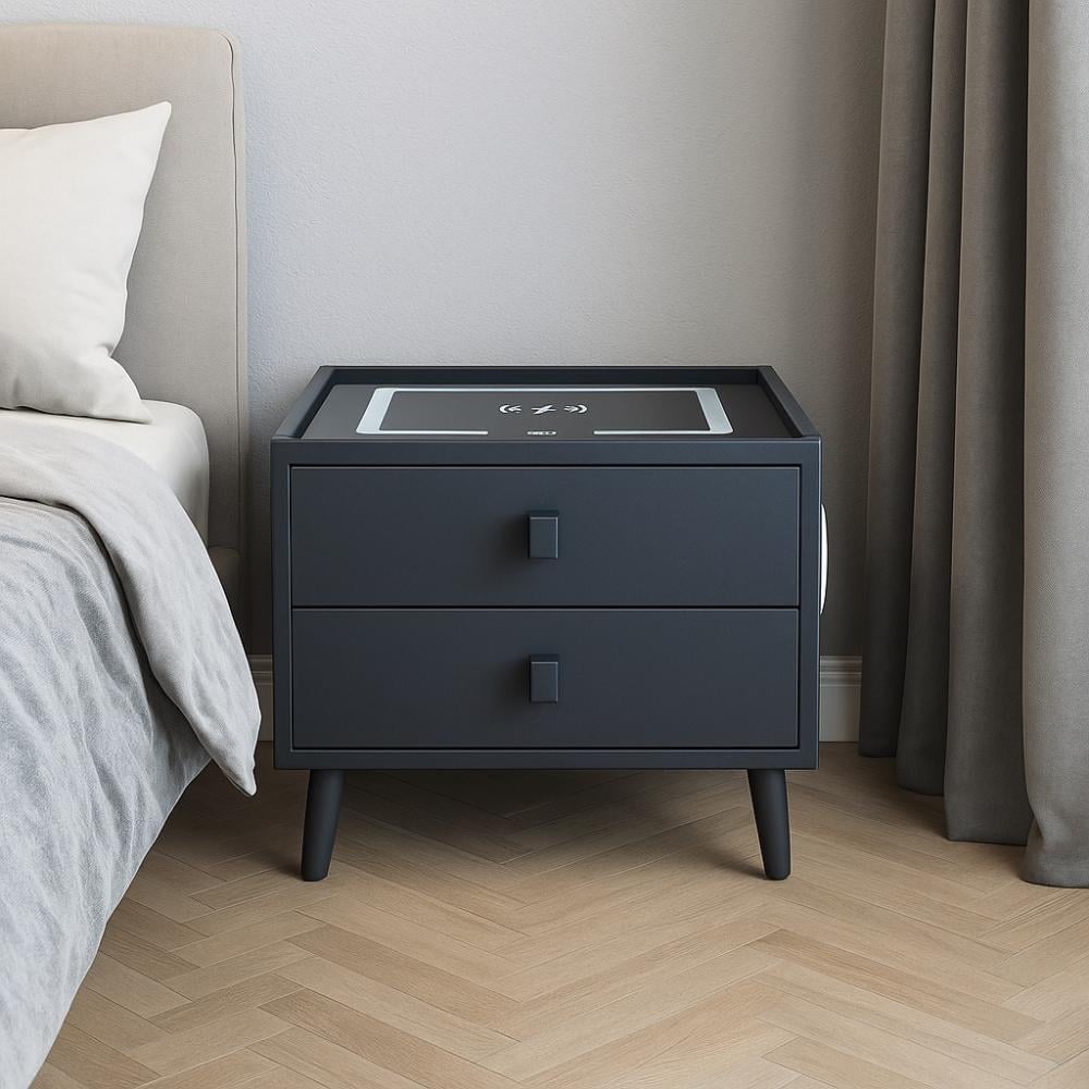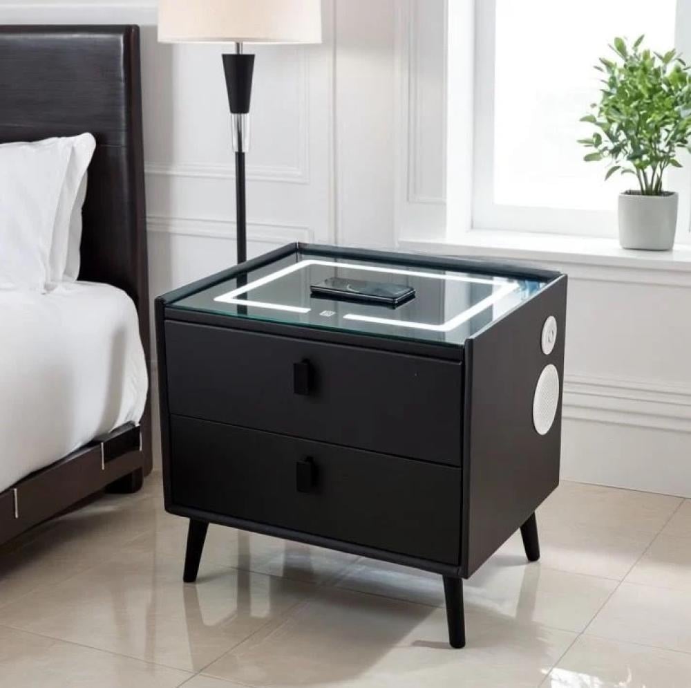 طاولة جانبية ذكية-كومودينو 2درج ذكي بشاحن لاسلكي وسماعة بلوتوث إضاءة ذكية لون أسود