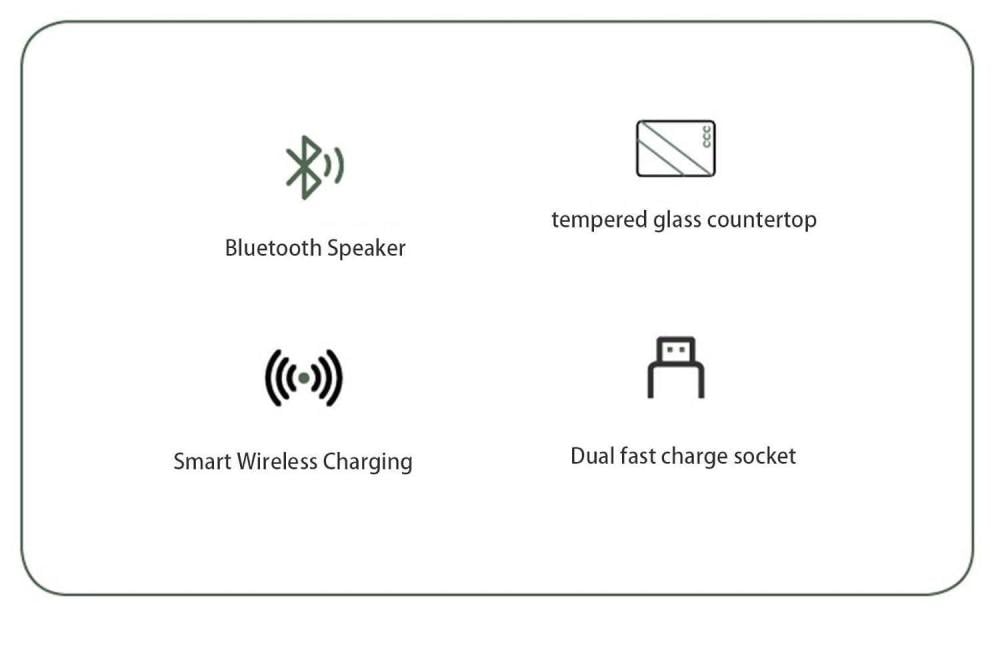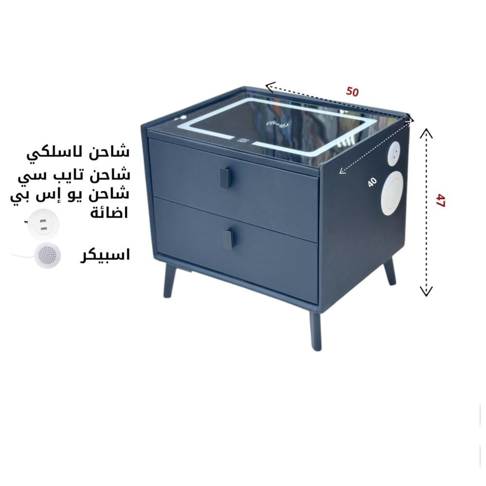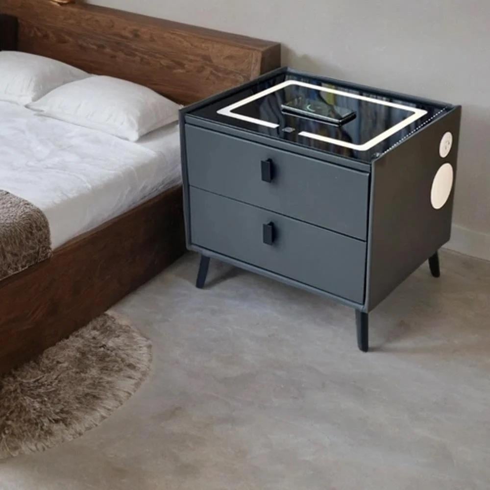 كومودينو ذكي متعدد الاستخدامات مصمم ليوفر لك تجربة عصرية داخل غرفة النوم أو المعيشة، يأتي ب2 أدراج واسعة مع سطح علوي مزوّد بشاحن لاسلكي مدمج، بالإضافة إلى منفذ USB للشحن وسماعة بلوتوث جانبية للحصول على صوت مميز. يجمع بين العملية والتقنية الحديثة مع تصميم أنيق يضيف لمسة فاخرة لأي مساحة.