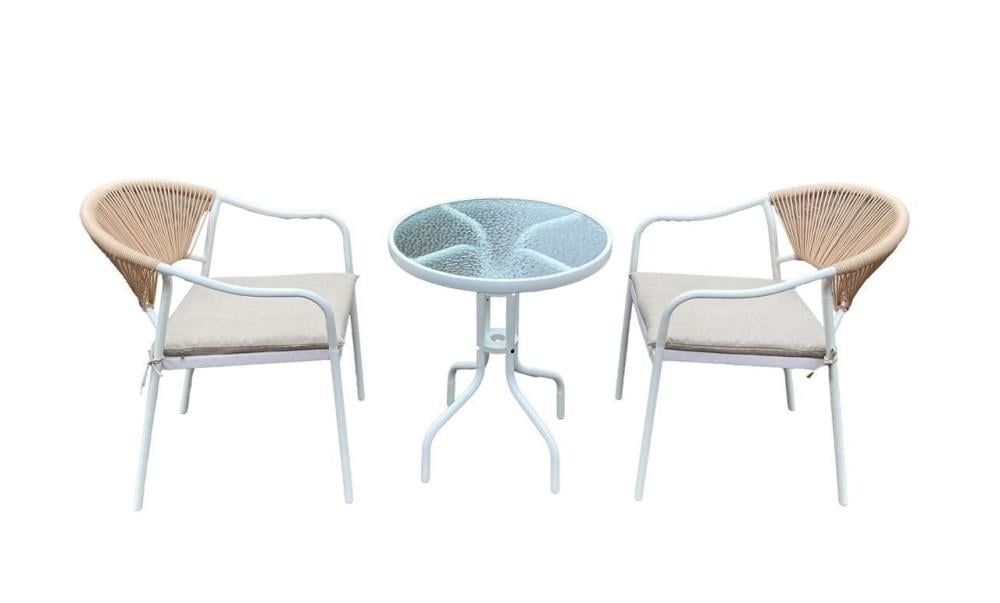 لا غنى عن اقتناء طقم طاولة الشاي الرائع هذا لتنعمي بجلسة ممتعة رفقة العائلة والأصدقاء. يضم طاولة مستديرة وكرسيّان مع تشطيب رائع وقوائم متينة . تأتي الطّاولة بخاماتها المتينة في حين تتمتّع الكراسي بوسائد مقاعد وتنجيد قماشي سادة ليمنحك راحة لا تضاهى.آلية الطاولة : ثابت عمق الطاولة (سم) : 59 إرتفاع الطاولة (سم) : 70 وزن الطقم (كجم) : 20 قاعدة الطاولة : ركيزة آلية الكرسي : ثابت عرض الكرسي (سم) : 50 عمق الكرسي (سم) : 50 إرتفاع الكرسي كامل (سم) : 70 الميزات : متين, أرجل معدنية خامة الأرجل :معدن الخامة الرئيسية : معدن خامة السطح : زجاج عدد القطع : 3