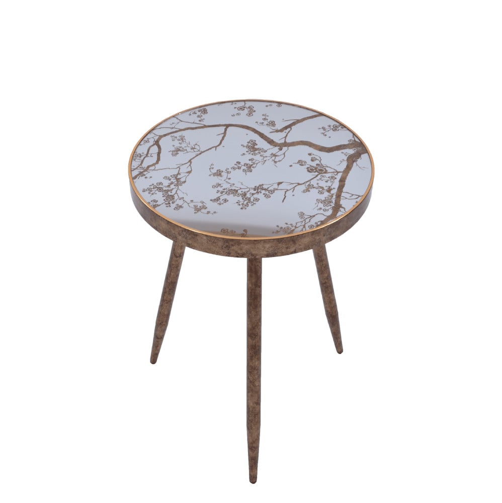 أكملي أناقة منزلك باعتماد هذا الطقم بسطح زجاج عليه نقوش مختلفة وارجل حديد دائرية الشكل اللون ذهبي.طقم طاولات عالية الجودة.