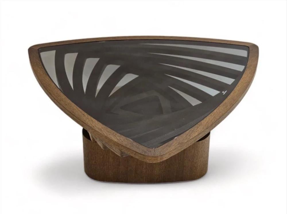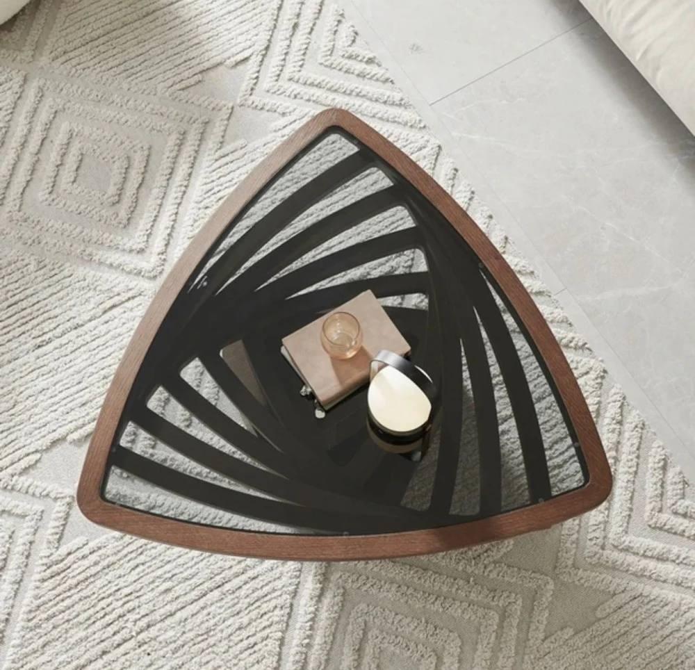 استمتع بلمسة من الأناقة الفاخرة في منزلك مع طاولة ضيافة المصنوعة من الخشب المميزة و بتصميمها المثلث الوحيد ولونها البني المودرن و ستضفي هذه الطاولة لمسة ساحرة وفريدة في أي مكان توضع فيه و بمقاساتها الرائعة و العرض 99 سم والارتفاع 40 سم .