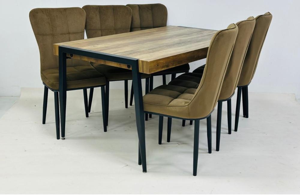 طقم طاوله طعام بخشب تصميم موردن لون بني 6 كرسي من كاما
