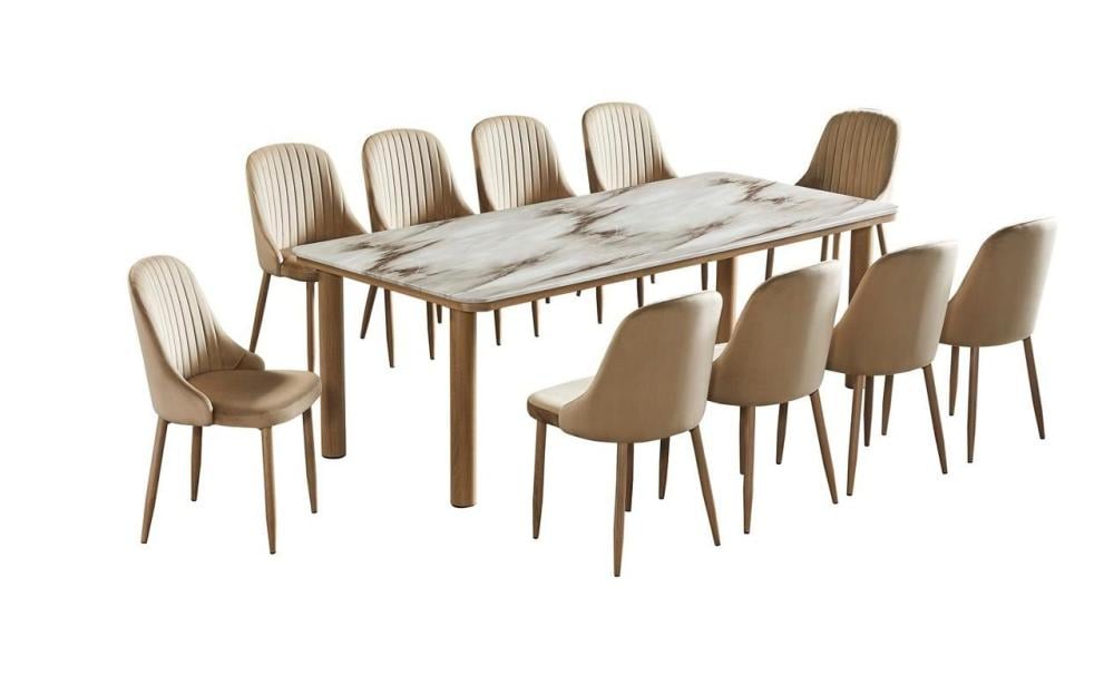 طقم طاوله طعام بديل رخام عصري لون بيج10 كرسي من كاما