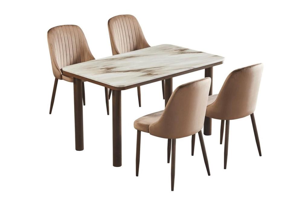 طقم طاوله طعام بديل رخام عصري لون بني 4 كرسي من كاما