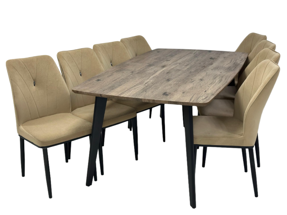 طقم طاوله طعام خشب تصميم عصري لون بيج 8 كرسي من كاما