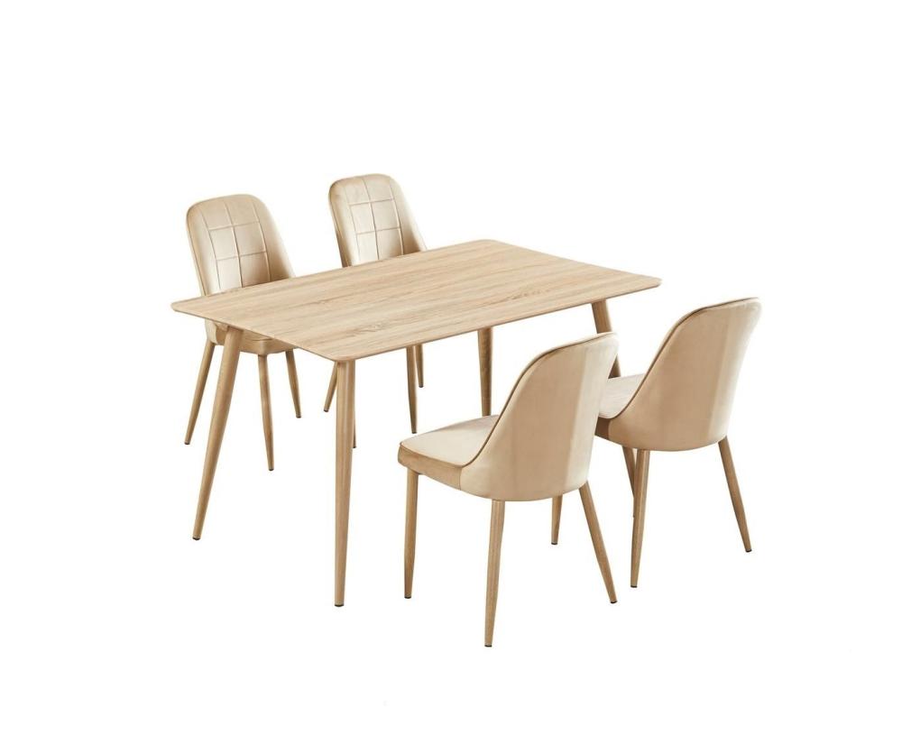 طقم طاوله طعام بخشب تصميم عصري لون بيج4 كرسي من كاما