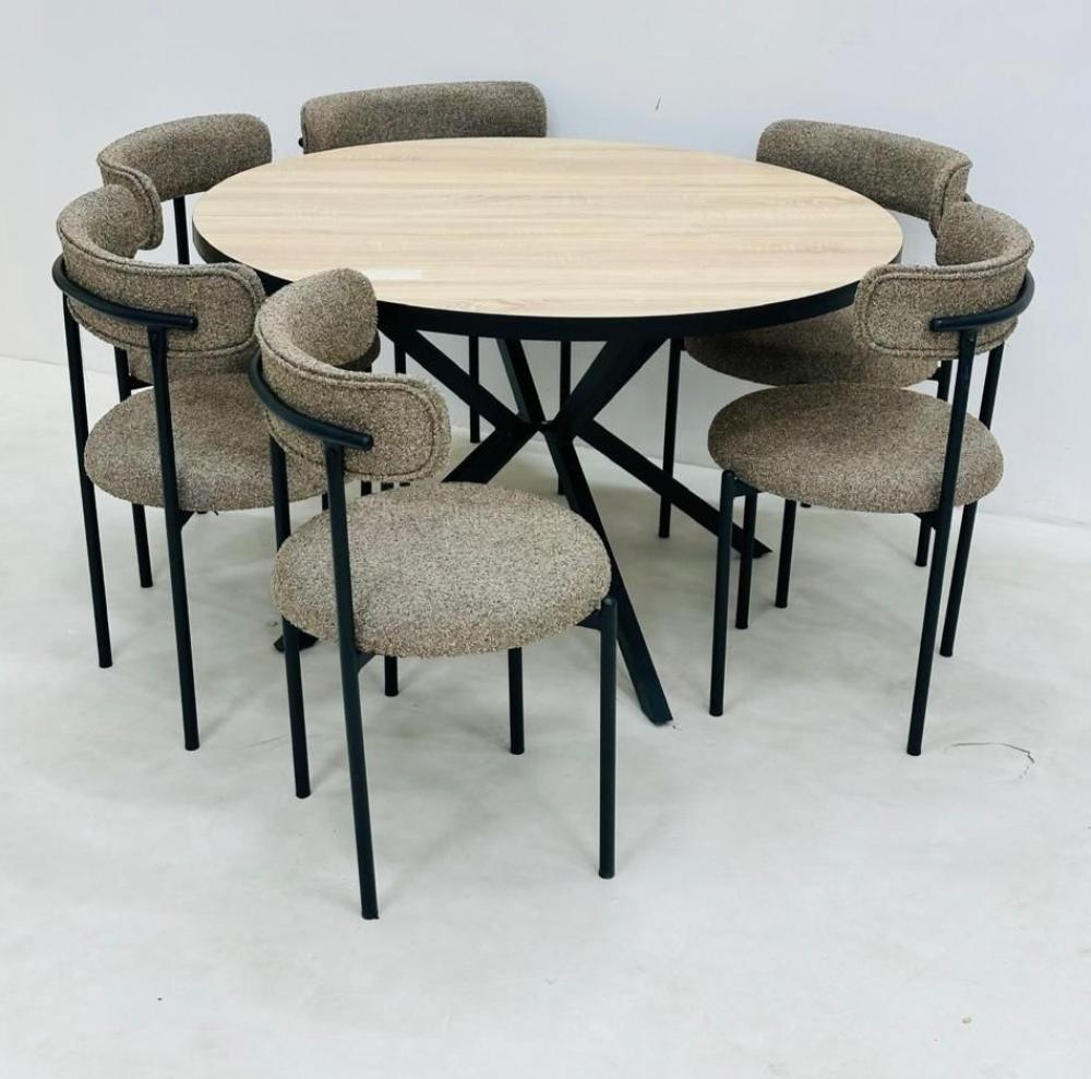 طقم طاولة طعام دائري خشبي 6كرسي لون بيج من كاما
