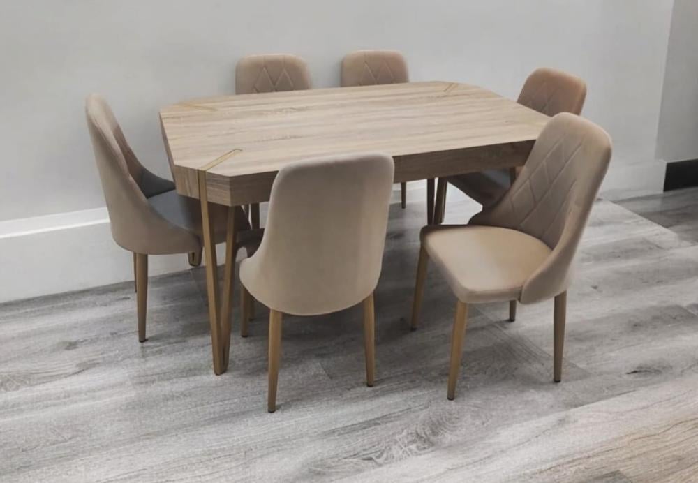 طقم طاوله طعام بخشب تصميم حديث لون بيج 6 كرسي من كاما