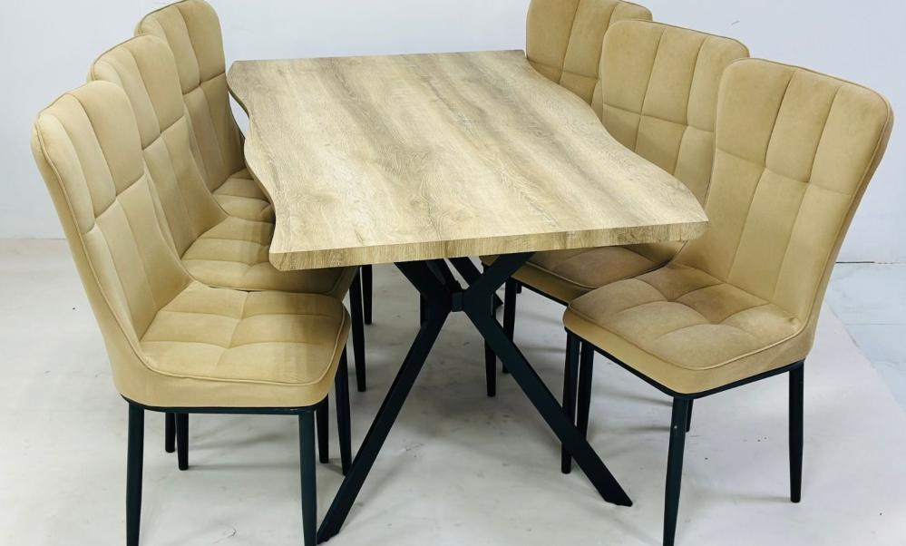 طقم طاوله طعام بخشب تصميم أنيق لون بيج 6 كرسي من كاما