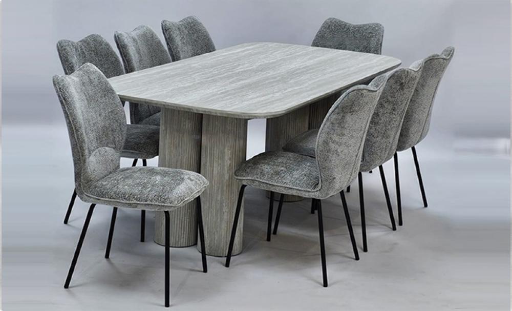 طقم طاوله طعام خشب تصميم عصري لون رمادي 8 كرسي من كاما