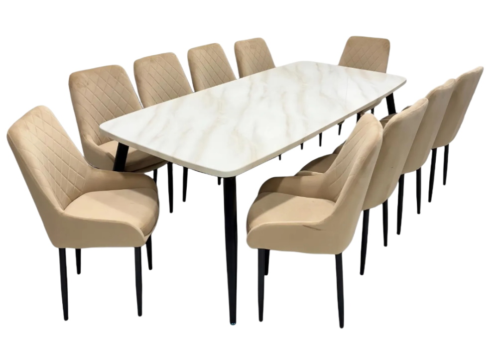 طقم طاوله طعام بديل رخام مودرن لون بيج 10 كرسي من كاما