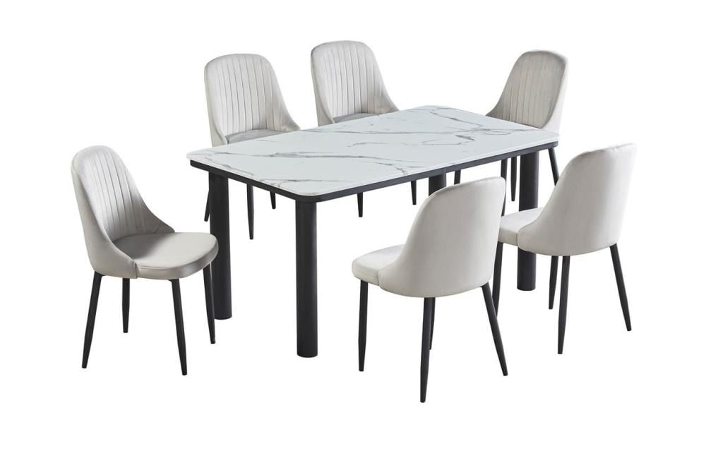 طقم طاوله طعام بديل رخام تصميم عصري لون رمادي 6 كرسي من كاما