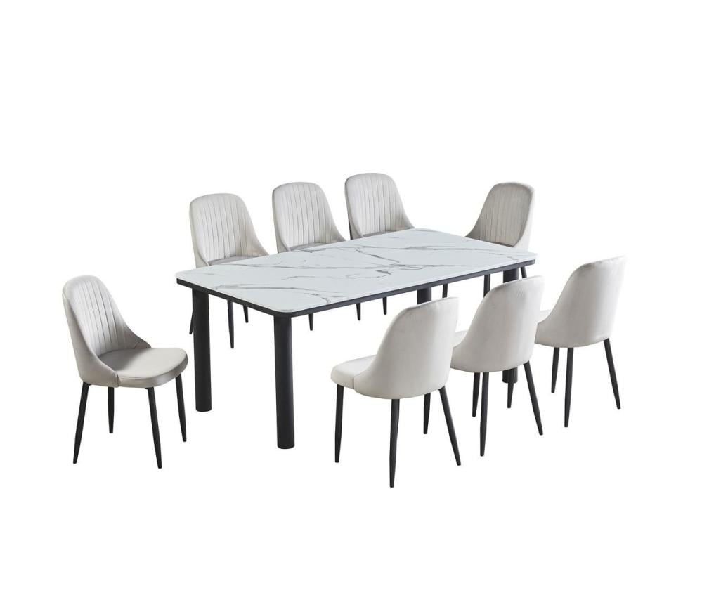 طقم طاوله طعام بديل رخام تصميم عصري لون رمادي 8 كرسي من كاما