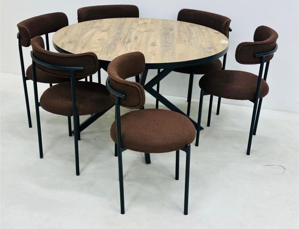 طقم طاولة طعام دائري خشبي 6كرسي لون بني من كاما